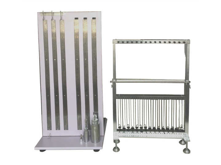 10.配置2個(gè)磨砂紅色紗框,可以掛30組試樣,紗框上懸掛30個(gè)2,5cn砝碼,紗框尺寸:高度730mm,直徑?310mm。